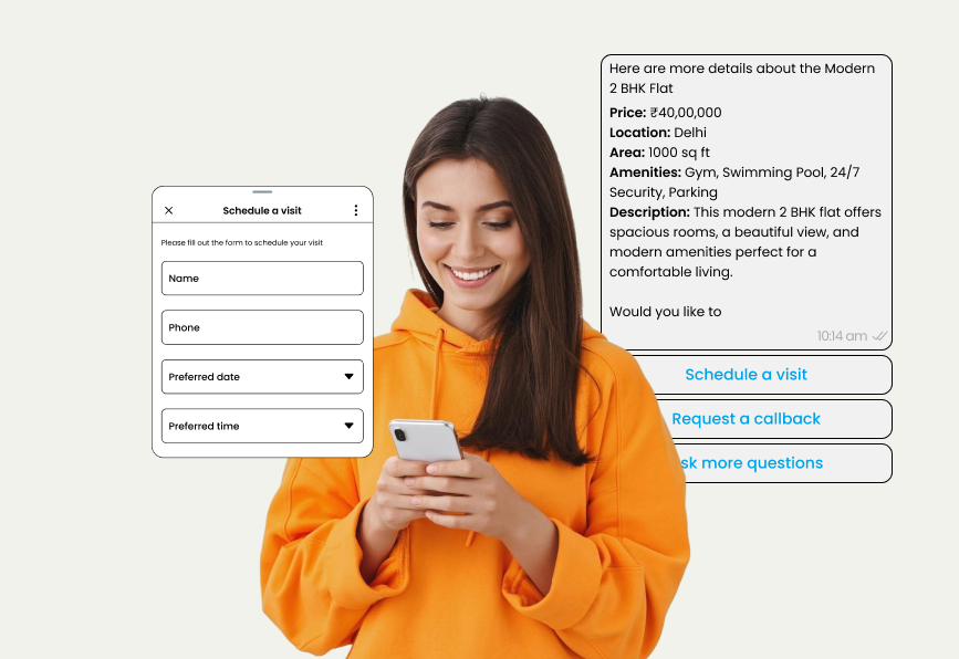 Automate real estate sales with WhatsApp! Instantly engage leads, share property details, schedule visits & boost conversions effortlessly.